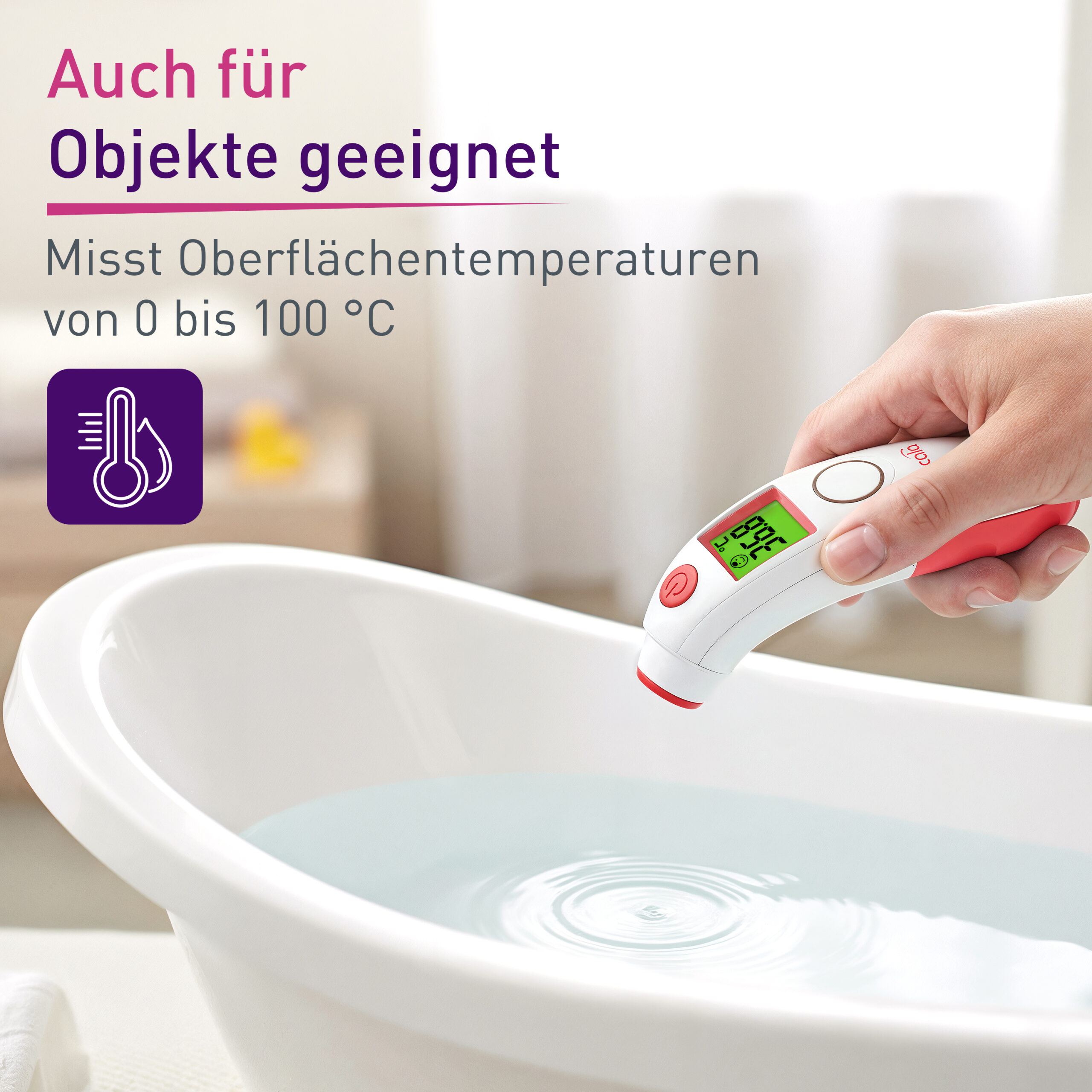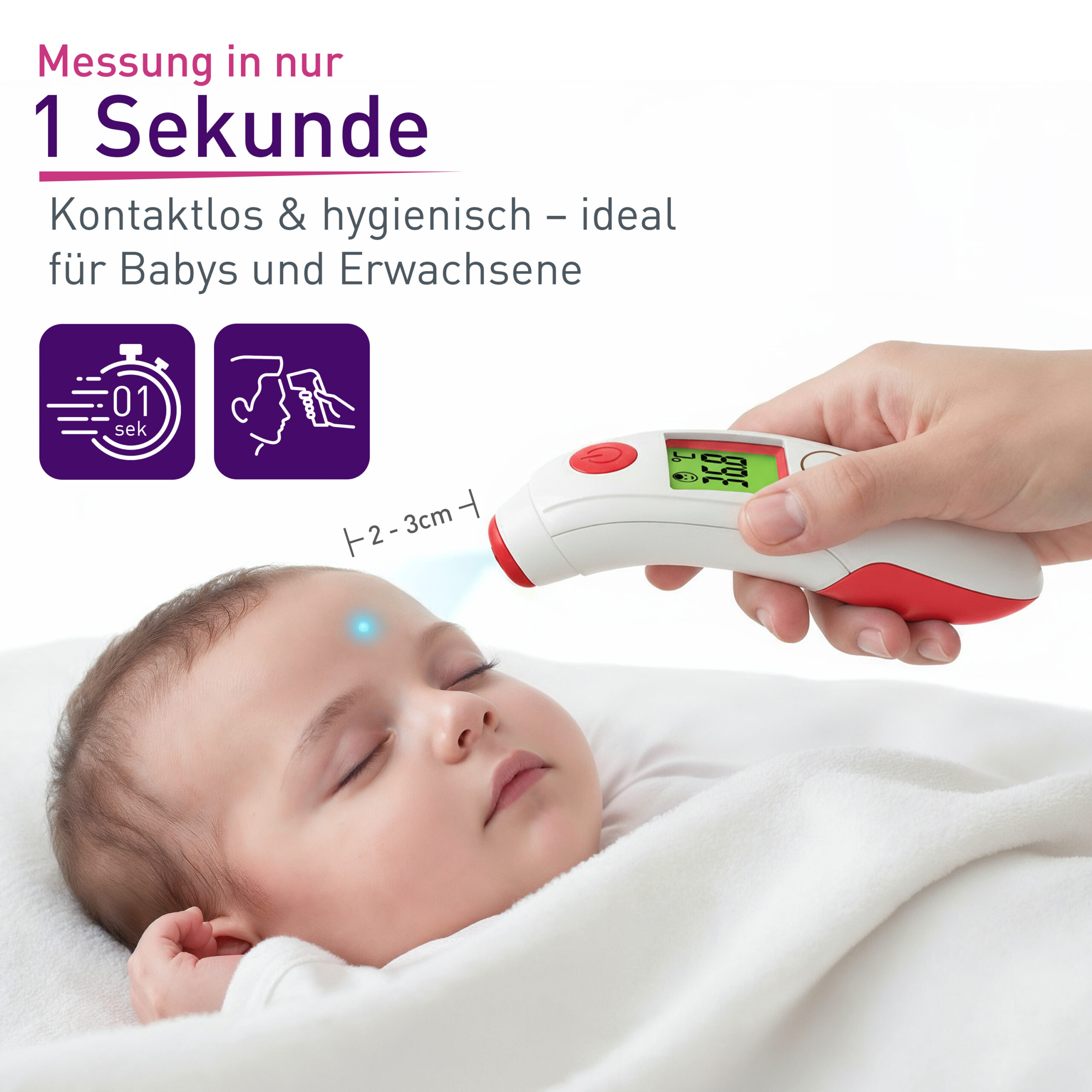 Das Thermometer „sieht“ mit dem Infrarot-Sensor die Temperatur. Ist der Infrarot-Sensor verschmutzt, kommt es zu Messabweichungen.